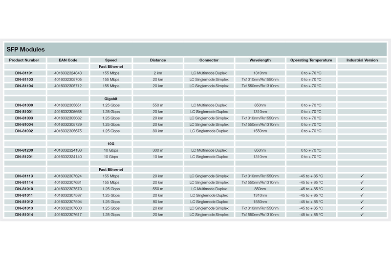 O módulo transcetor DIGITUS® Mini GBIC (SFP) proporciona alta qualidade e fiabilidade. Quer seja a partir de interruptor para interruptor, conversor para interruptor, conversor para conversor ou qualquer outra aplicação: a vasta gama de módulos DIGITUS® permite a utilização flexível da tecnologia de fibra ótica. A conformidade com a norma MSA (Multi Source Agreement) garante a compatibilidade com fabricantes terceiros.