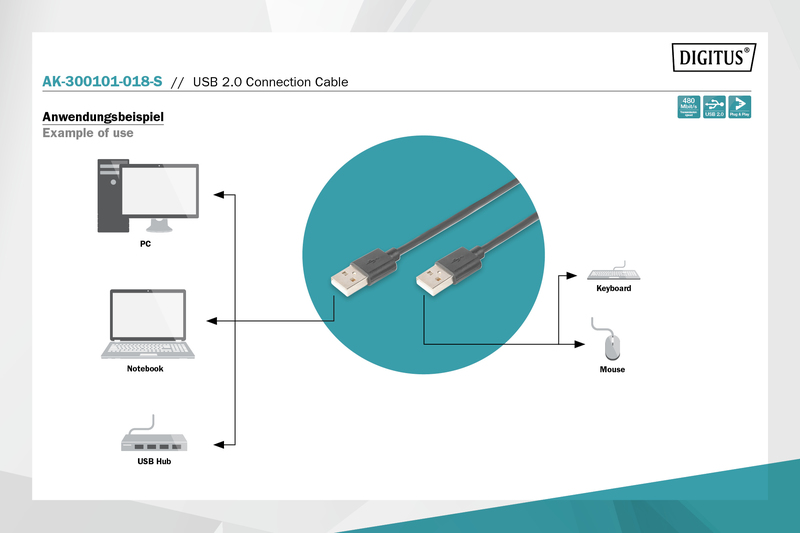 DIGITUS USB 2.0 Bağlantı kablosu
