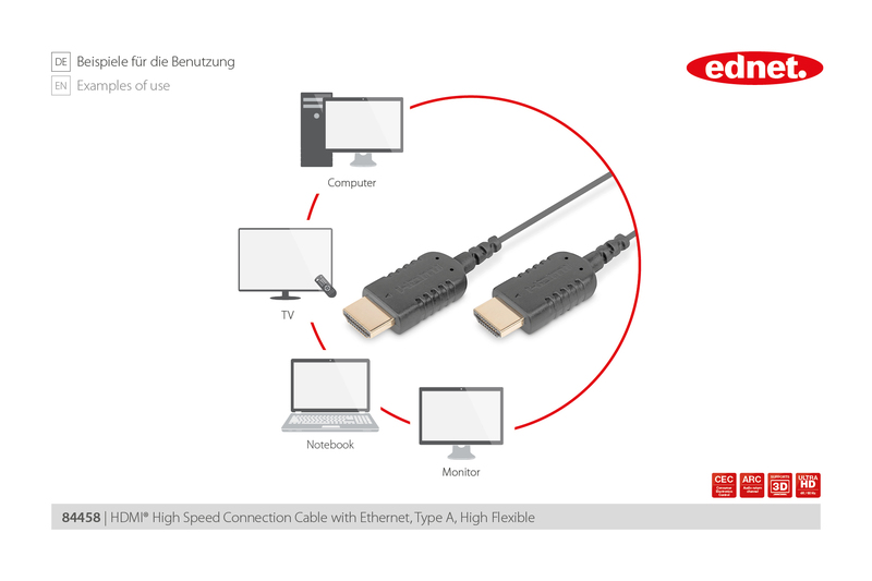 • Supports ARC (Audio return channel) und CEC (Consumer electronic control)