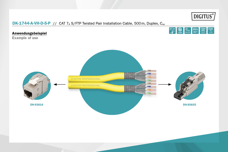 DIGITUS Cat. 7A class FA, S/FTP, Twisted Pair installation cable, 500 m, duplex, 1500 MHz