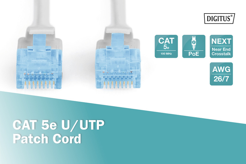The DIGITUS® Category 5e Class D patch cords are manufactured and tested to the ISO/IEC 11801 and DIN EN 50173 Category 5e specifications. They will guarantee the installed cabling system is compliant with the ISO & EN channel specification requirements and will provide optimum performance levels of DIGITUS® Category 5e cabling. The performance is tested up to 100 MHz inclusive performance characteristics such as near end cross talk (“NEXT”). DIGITUS® patch cords are designed and produced to fulfill the highest requirements of various application areas in full volume. Each cable is fitted with a molded boot which comes with kink protection and strain relief. Furthermore the boot is equipped with a latch protection that prevents the latching lever against breaking.You can easily identify the Category 5e, because of the transparent blue colored connector.