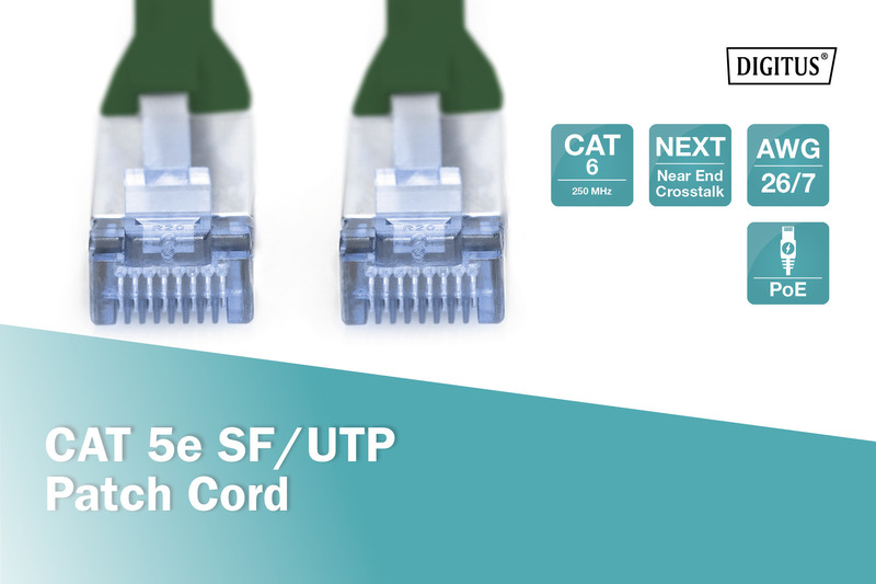 The DIGITUS® Category 5e Class D patch cords are manufactured and tested to the ISO/IEC 11801 and DIN EN 50173 Category 5e specifications. They will guarantee the installed cabling system is compliant with the ISO & EN channel specification requirements and will provide optimum performance levels of DIGITUS® Category 5e cabling. The performance is tested up to 100 MHz inclusive performance characteristics such as near end cross talk (“NEXT”). DIGITUS® patch cords are designed and produced to fulfill the highest requirements of various application areas in full volume. Each cable is fitted with a molded boot which comes with kink protection and strain relief. Furthermore the boot is equipped with a latch protection that prevents the latching lever against breaking.You can easily identify the Category 5e, because of the transparent blue colored connector.