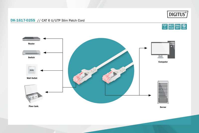 - Slim CAT 6 U/UTP patch cord, LSZH